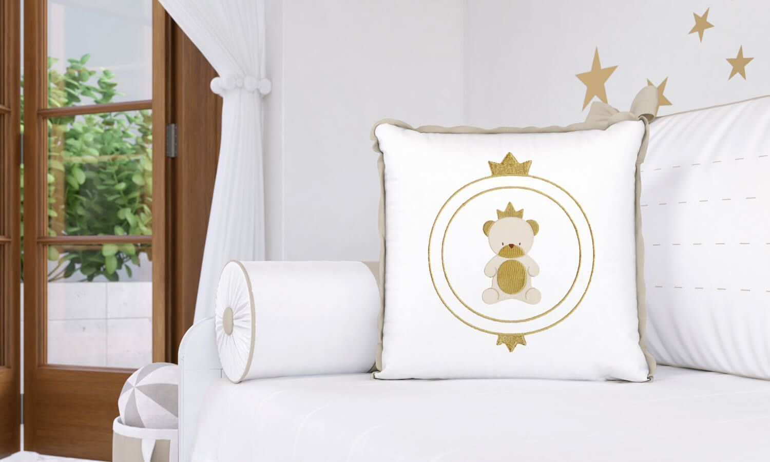 Quem não ama um bordado sofisticado e exclusivo? A Almofada Urso Teddy Realeza 38cm coroa a decoração do quarto de bebê e vai ganhar o coração das mamães de pequenos príncipes! Desenhado com amor, o bordado transparece toda a nobreza dessa coleção clássica com um lindo ursinho, que se destaca pelas suas coroas.