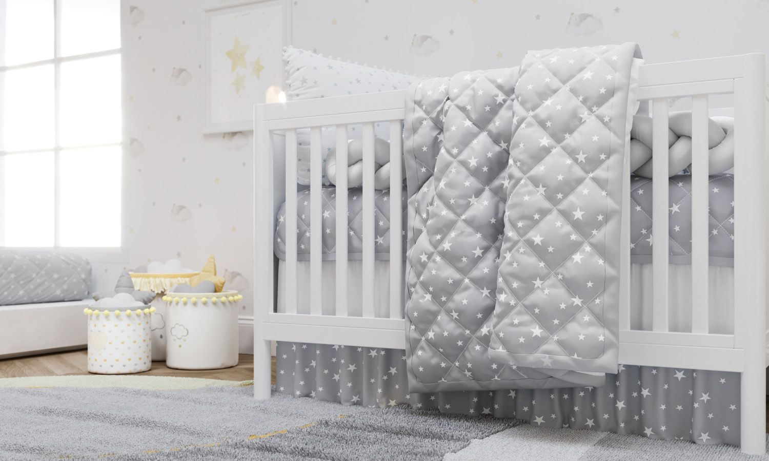 Edredom de Berço Matelado Estrelinhas Cinza/Rosa