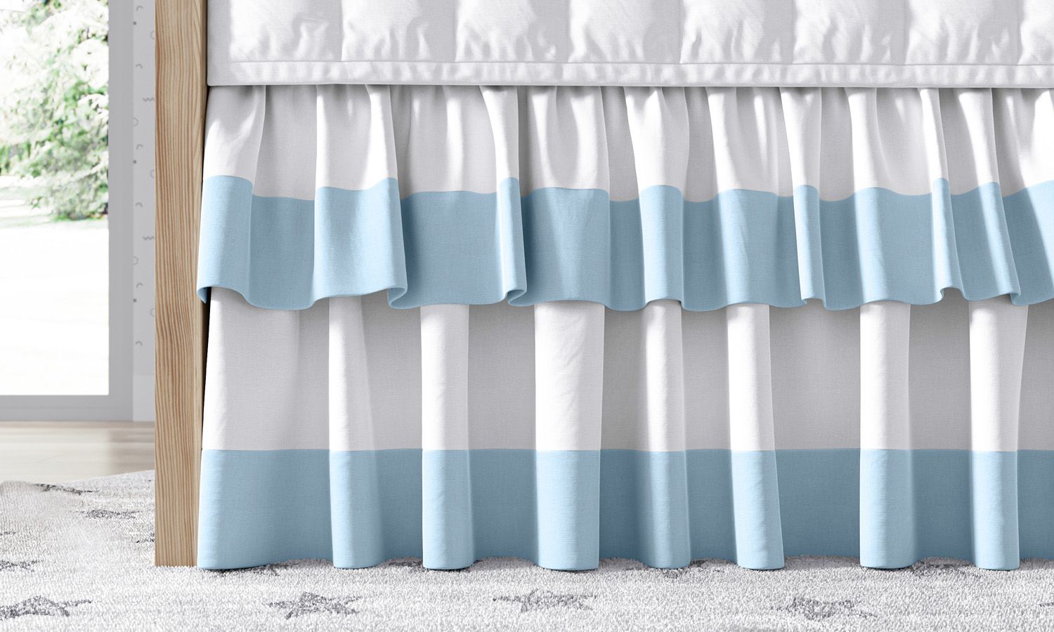 Saia de Berço Babado Duplo Branco e Cinza